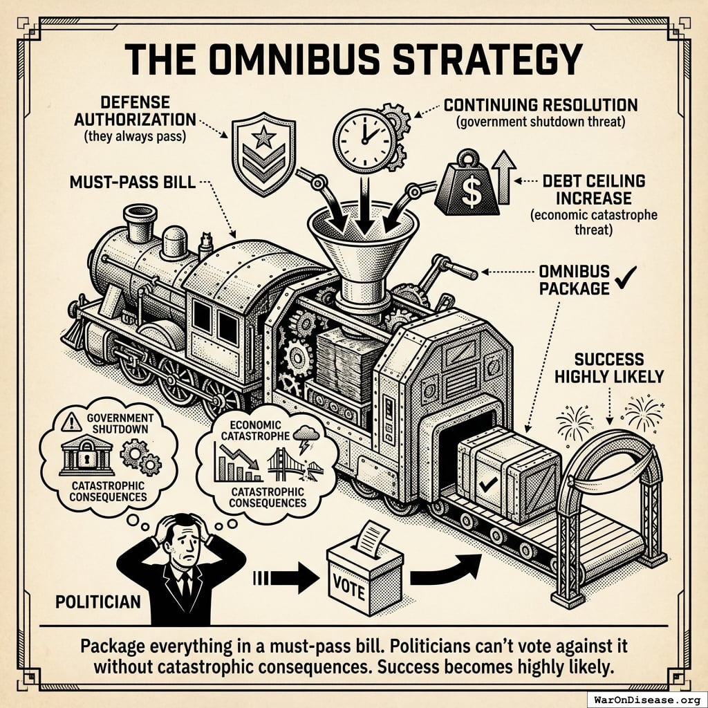 Once it passes, it’s essentially permanent. Repealing it means admitting they’re choosing bombs over cures. Political suicide.