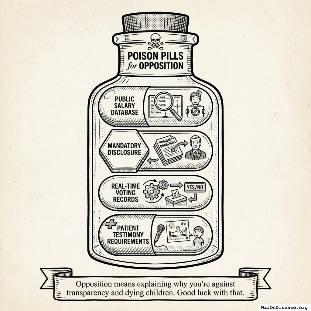 - Public salary database (shows who’s blocking cures)