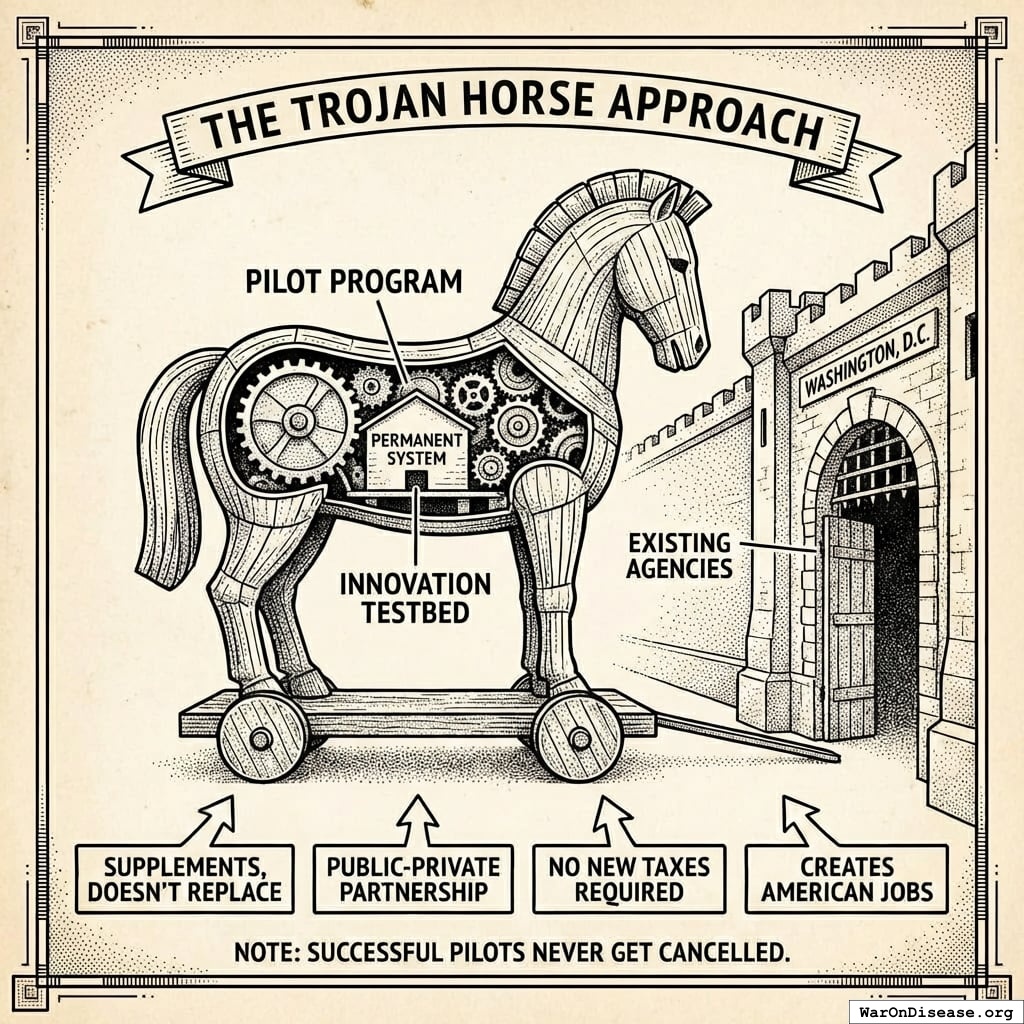 This is your blueprint for five bills that transform healthcare forever. Each one is designed to pass because it gives politicians what they crave: money, votes, and the ability to claim they did something.