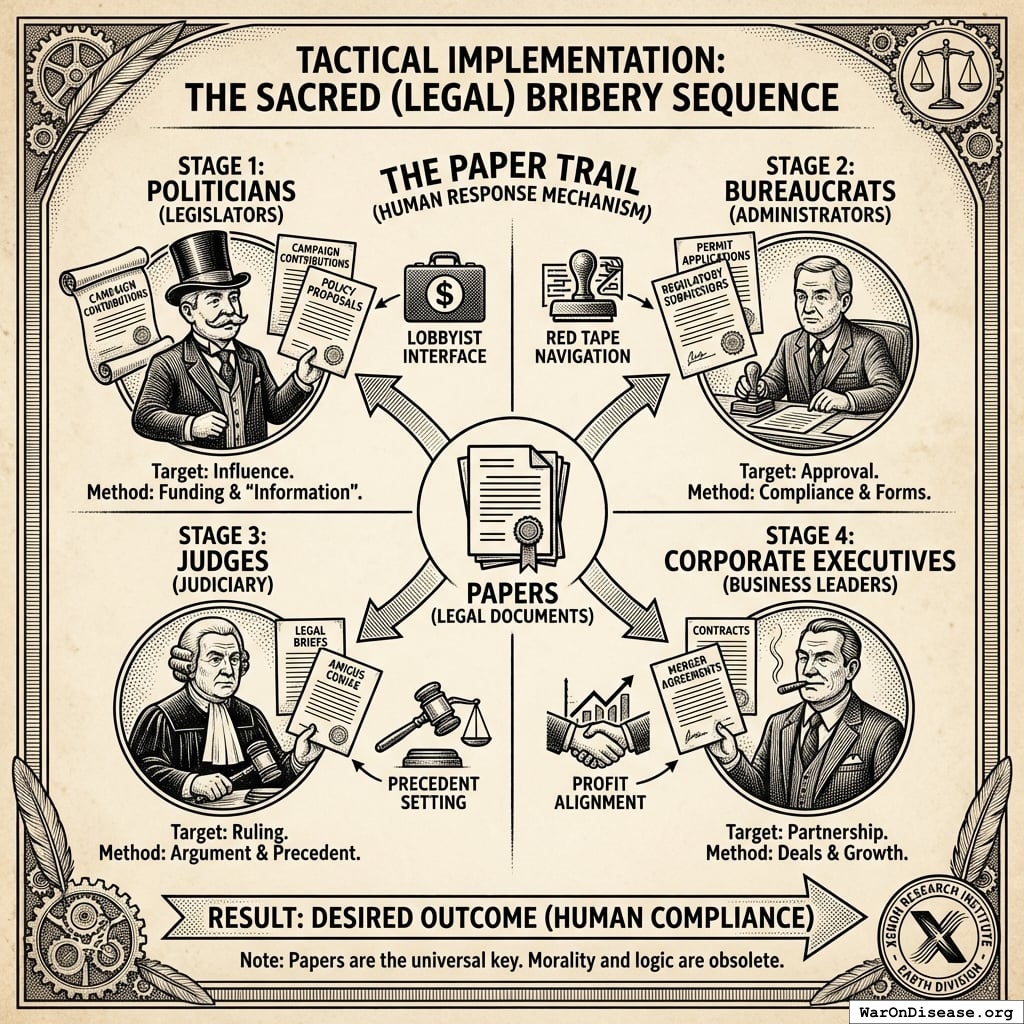 2. Phase 2: Scale the Clicking, Hire Professional Bribers (Months 4-18). With proof that humans will click buttons when offered money, you raise more papers from venture capitalists (humans who gamble professionally while wearing suits). You use these papers to scale the referendum to millions of clickers and hire your first professional lobbyists - humans whose actual job is “convince politicians that things are good.”