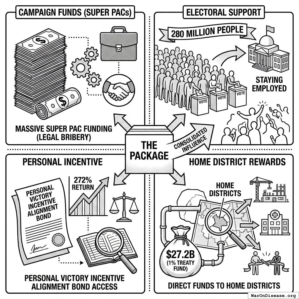 The 80/10/10 funding allocation includes 10% for political incentives via Incentive Alignment Bonds. This isn’t a fixed cost - it’s a scaling engine.